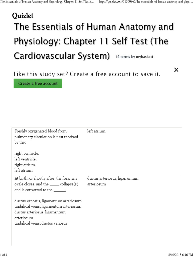 Anatomy And Physiology Chapter 11 Self Test Vein Heart