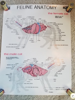 Feline Anatomy Poster Ics Learning System 22 X17 Vintage 1990